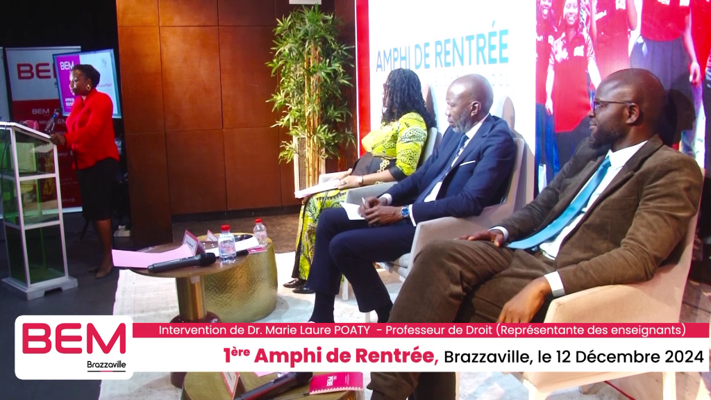 Lors de l’Amphi de Rentrée de BEM Brazzaville, Dr. Marie Laure Poaty, représentante du corps enseignant, a captivé l’audience par une intervention forte et inspirante. Elle a redéfini la notion d’excellence, l’une des valeurs phares de BEM aux côtés de l’exemplarité et de l’innovation, comme un objectif partagé entre les enseignants et les étudiants.