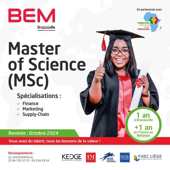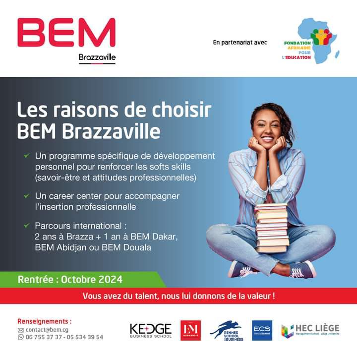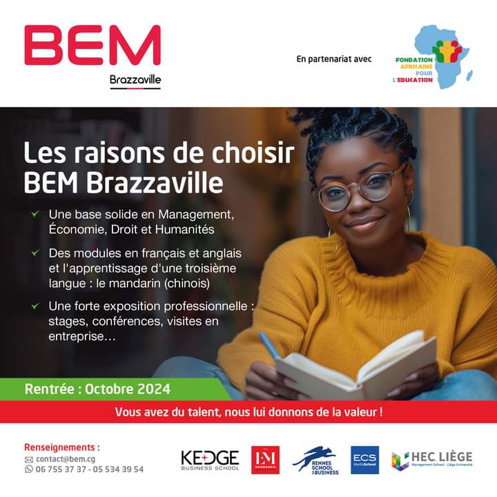 “Dans cette initiative ambitieuse, BEM Brazzaville s’appuie sur des partenariats académiques solides avec des institutions renommées telles que KEDGE Business School, IESEG, Rennes School of Business, EM Normandie Business School et HEC Liège” poursuit le post, précisant que BEM Brazzaville incarnait pleinement les objectifs de la Fondation pour l’éducation en Afrique, qui visent à former des cadres, des entrepreneurs et des leaders africains, à l’instar du programme EsMBA de HEC Montréal.