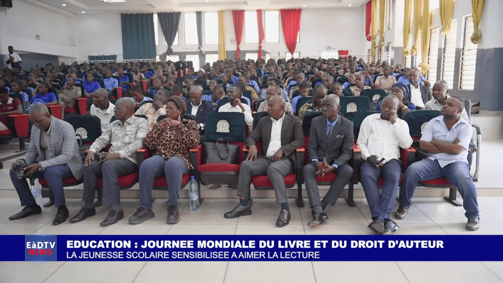 Renforcement des Centres de Lecture. Le Directeur de Cabinet a annoncé que des fonds budgétaires spécifiques ont été alloués cette année pour la réhabilitation des centres de lecture, soulignant l’engagement du gouvernement à promouvoir la culture et l’éducation. Cliquez ici pour visionner le reportage de EADTV.Priorité aux Livres Accessibles pour les Jeunes. Lors de son allocution, Bellarmin ILOKI, Directeur Général du Livre et de la Lecture publique, a exhorté les écrivains à mettre l’accent sur les livres adaptés aux jeunes lecteurs. Cette initiative vise à encourager la lecture chez les nouvelles générations. Cliquez ici pour visionner le reportage de EADTV.L’exposition-vente de livres a été un moment marquant de la célébration, avec la Direction Générale du Livre et de la Lecture Publique ainsi que trois librairies exposant leurs collections. Les visiteurs ont bénéficié de réductions allant jusqu’à 50%, faisant de cet événement une occasion exceptionnelle pour acquérir de nouveaux ouvrages. Cliquez ici pour visionner le reportage de EADTV.Une Affluence Record: La célébration de la Journée Mondiale du Livre et du Droit d’Auteur a connu un vif succès avec la participation de près de 300 personnes. Parmi les participants, on comptait des éditeurs, des écrivains, des représentants du Ministère, des membres d’associations culturelles, ainsi que des élèves du Lycée de la Révolution, témoignant de l’importance de l’événement dans le milieu culturel et éducatif. Cliquez ici pour visionner le reportage de EADTV. Le Livre au Cœur des Débats: Après la cérémonie officielle, un panel composé de trois experts a abordé l’importance du livre dans la société : le premier, positionné au centre, a mis en lumière le rôle crucial du livre dans l’épanouissement scolaire des élèves ; le second, à l’extrême droite, a souligné comment le livre stimule le développement économique ; et le troisième, à l’extrême gauche, a plaidé pour l’évaluation de la lecture en français comme moyen d’encourager les jeunes à se plonger dans les livres. Cliquez ici pour visionner le reportage de EADTV. Récompenses pour les Lauréats des Concours Littéraires. La célébration s’est clôturée par la remise de cadeaux aux lauréats des deux concours : la dictée et la question pertinente. Chaque candidat a reçu un lot de livres, encourageant ainsi leur passion pour la lecture. 📖🏆